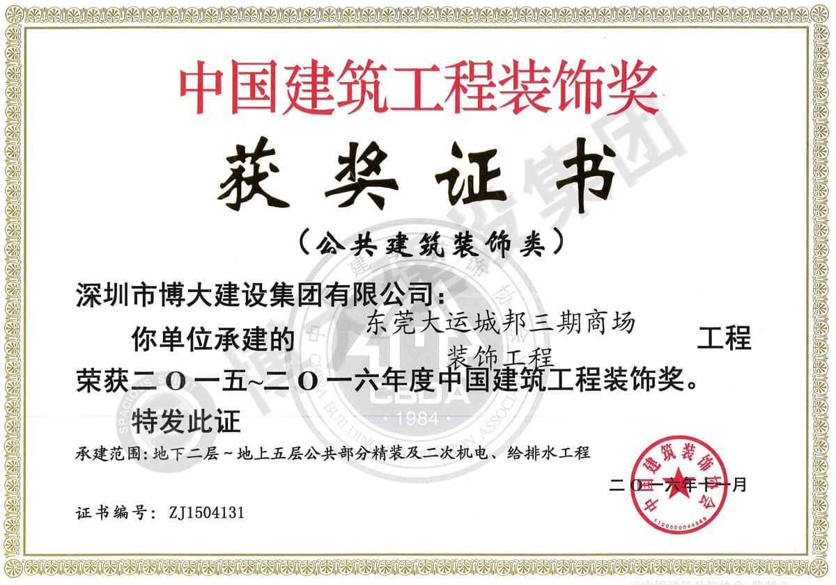 中國建筑工程裝飾獎(東莞大運城邦三期商場-裝飾)
