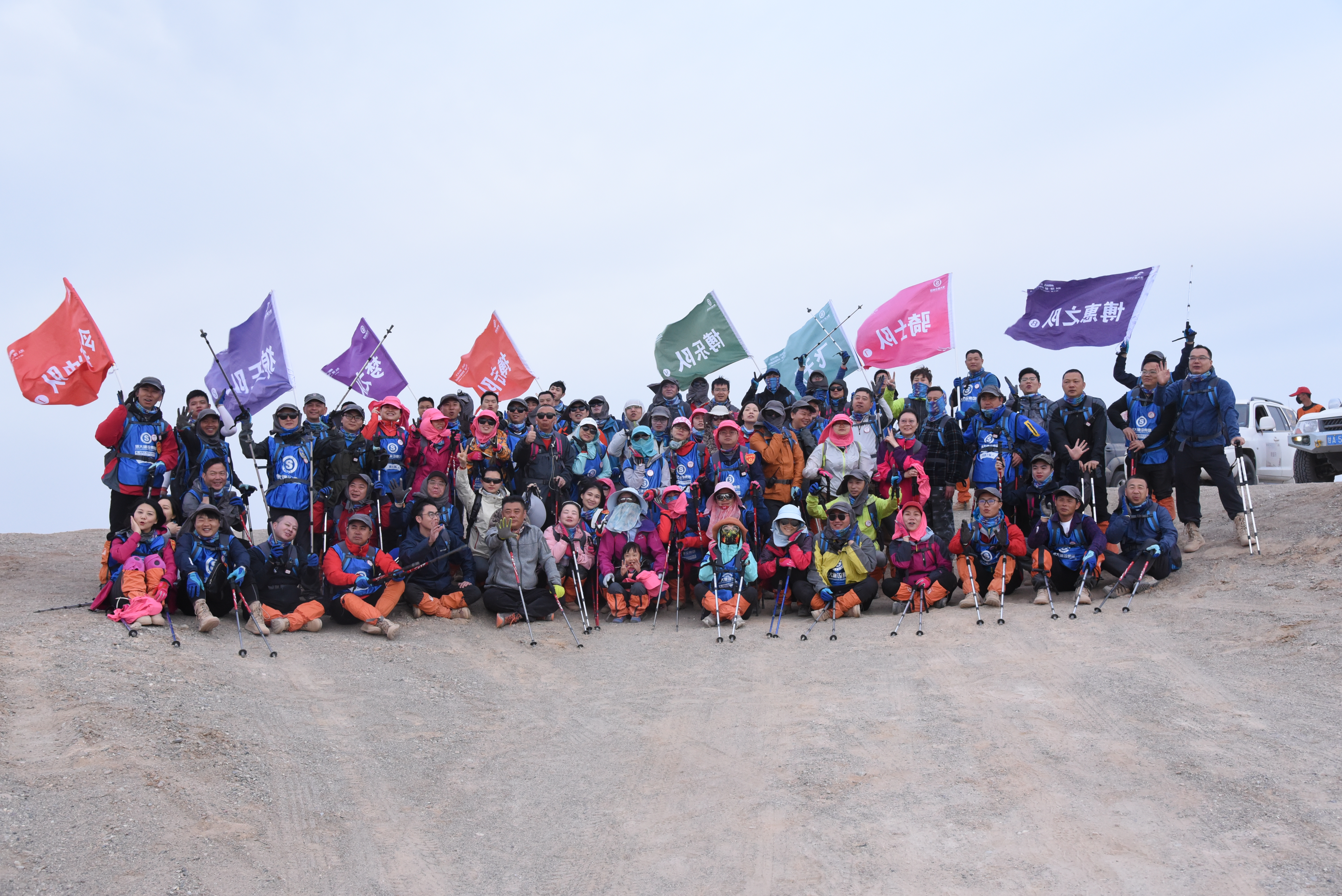 頂烈日、冒酷暑、斗風沙。上至六旬的長者、下至五歲的孩子,面對惡劣的自然環境,部分成員出現中暑、全腳磨泡、腳趾出血、心率加快等身體不適,不拋棄、不放棄,憑借著不畏艱難、勇于挑戰的堅定信念,相互鼓勵和扶持,最終全員成功完成挑戰。